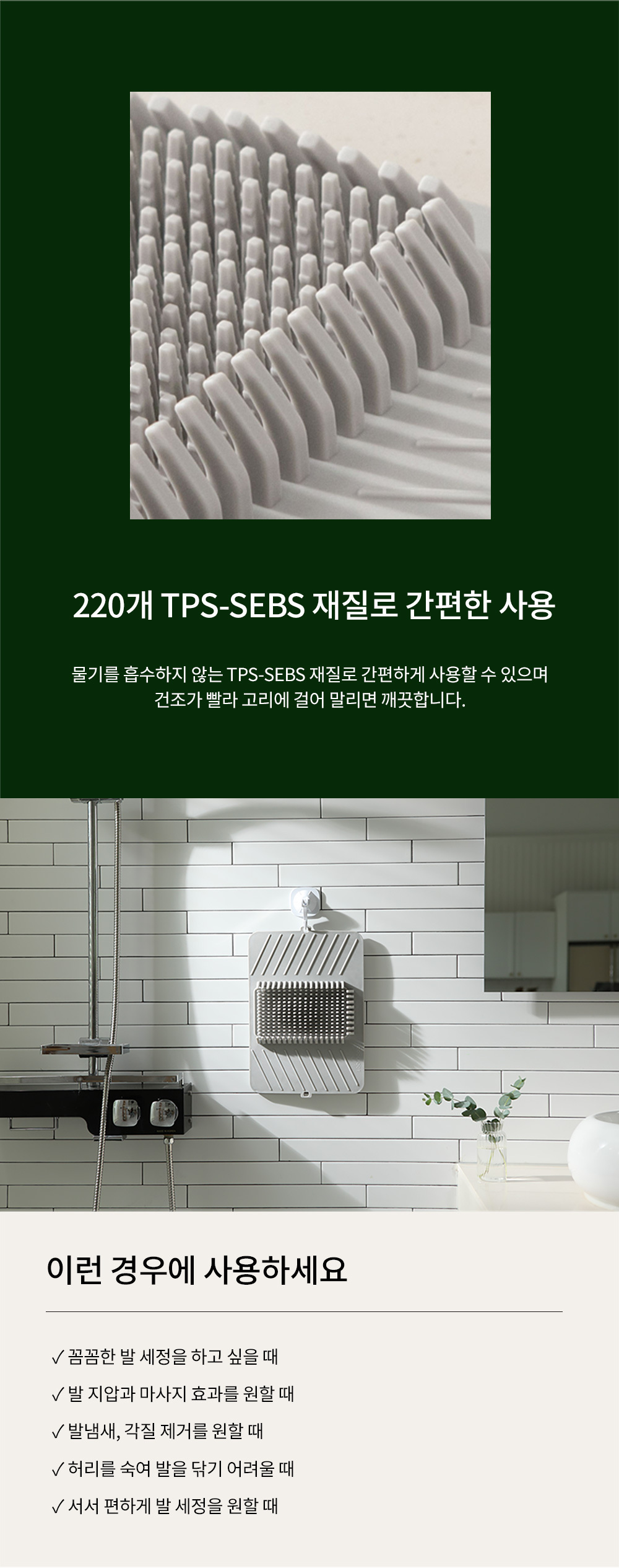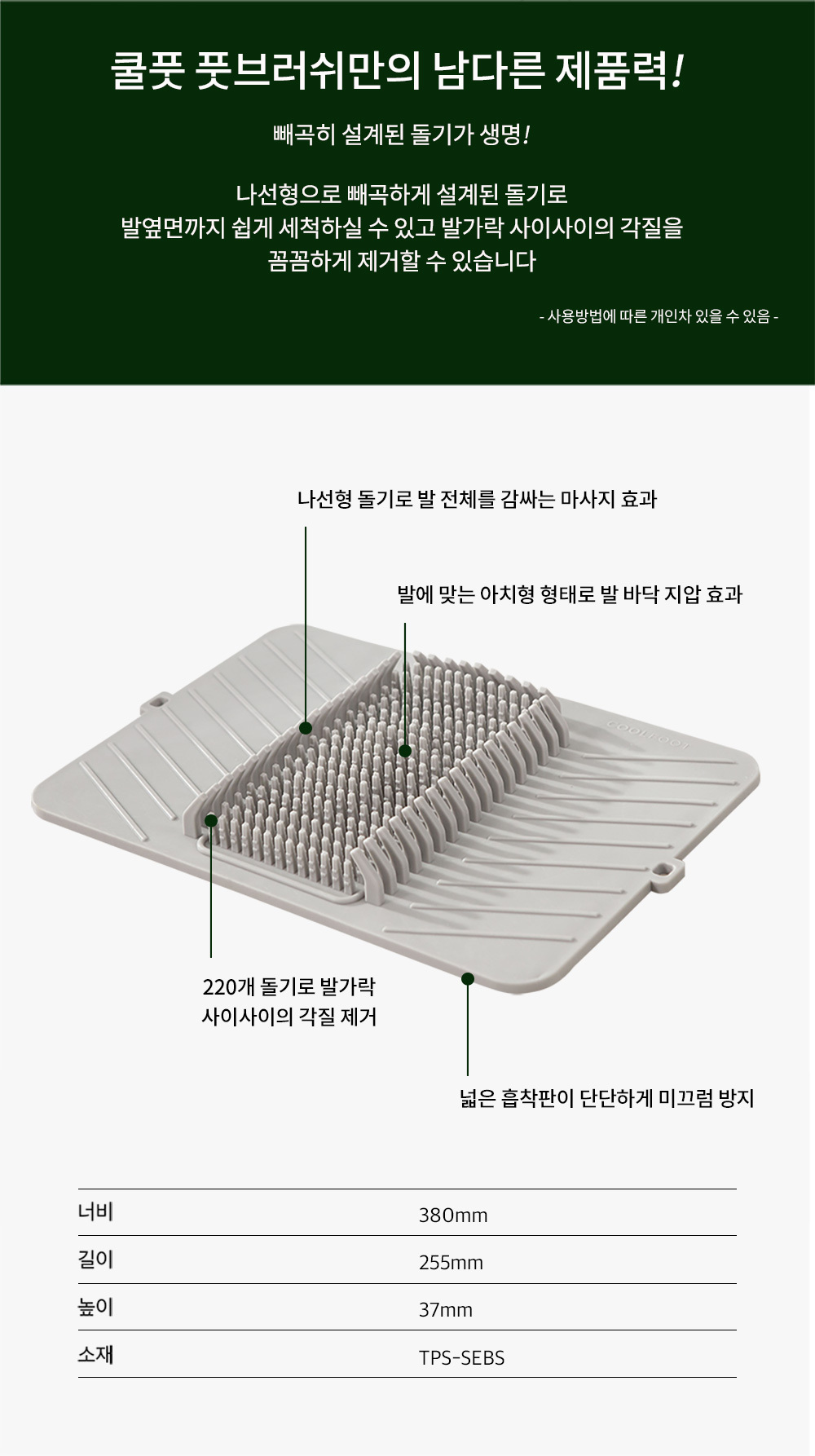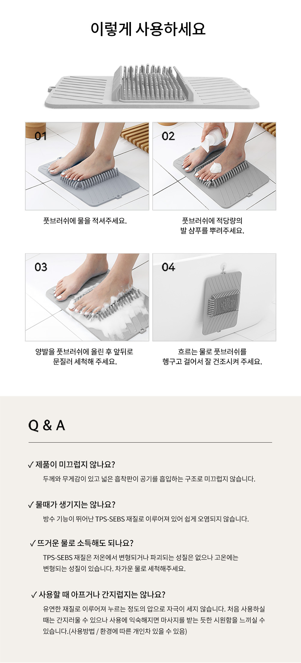 노폐물과 각질을 꼼꼼히 제거하는 동시에 발 마사지를 할 수 있는 발 전용 브러쉬